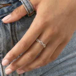 Bague ouverte en argent véritable avec un jeu de maillons entrelacés. PM: 48/50 – MM: 52/54 – GM: 56/58