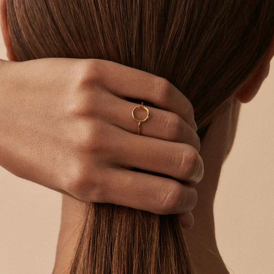 Bague, en argent véritable plaqué or, avec un anneau évidé sur la partie supérieure