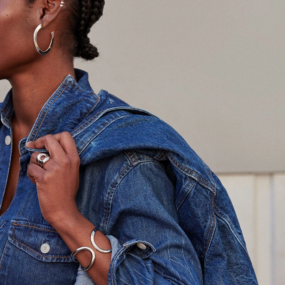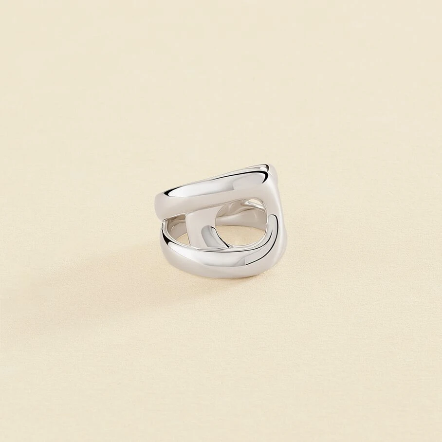 Bague large en argent véritable formée de deux fils arrondis superposés