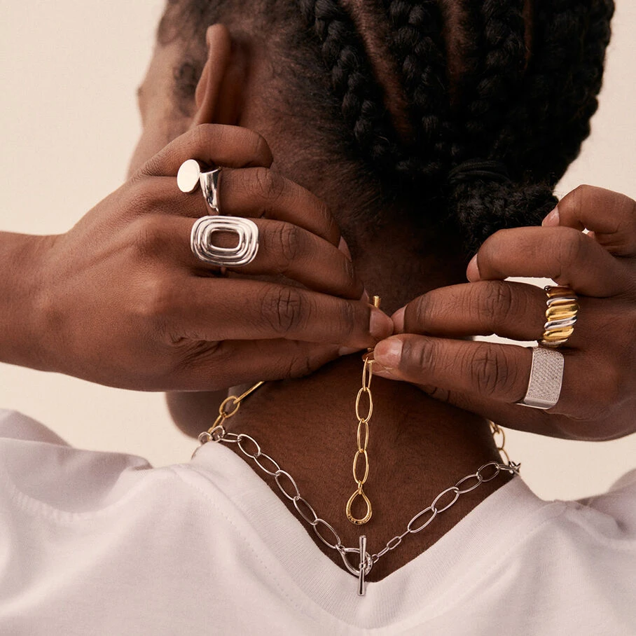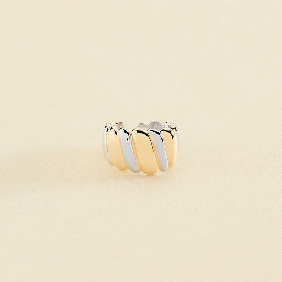 Bague large, en argent véritable et doré 750/1000, avec un effet de corde tressée