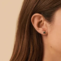 Boucles d’oreilles mi-longues, en argent véritable, constituées de deux fleurs d’oxydes de zirconium et d’un fin graineti sur le pourtour