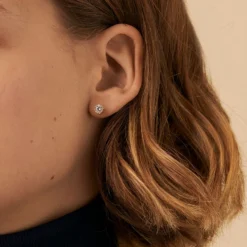 Boucles d’oreilles dormeuses, en argent véritable doré à l’or fin, avec un oxyde de zirconium griffé de 5mm de diamètre