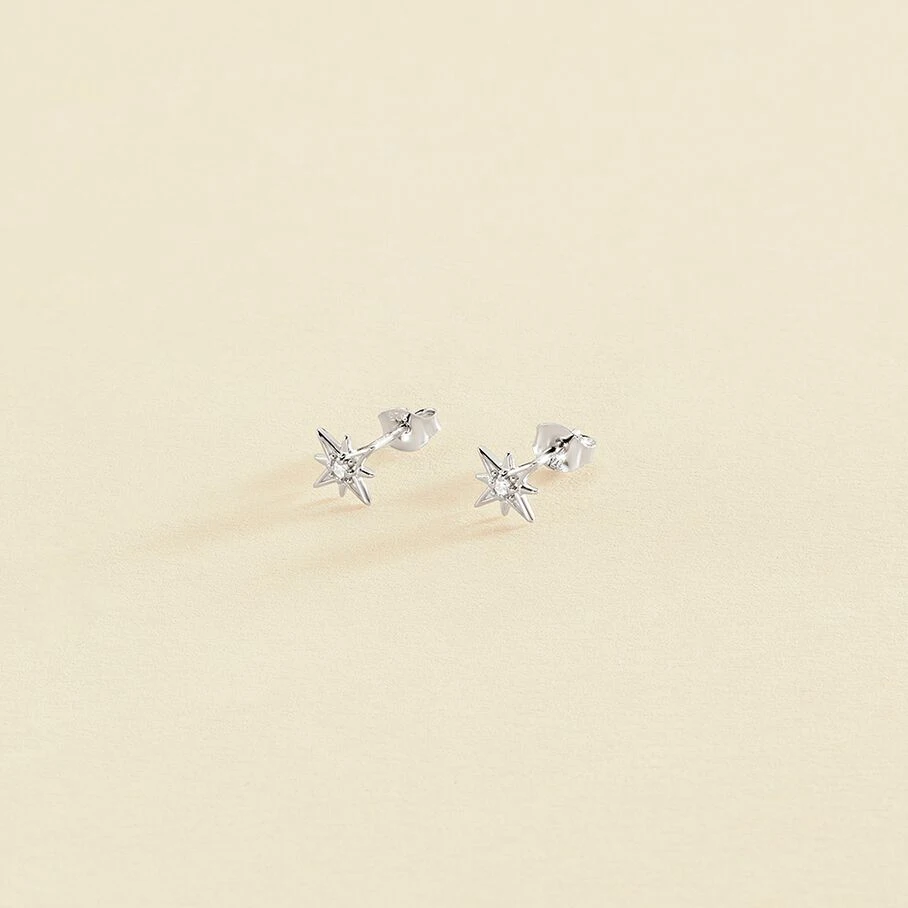 Boucles d’oreilles puces en argent véritable en forme d’étoile ornée d’un oxyde de zirconium au centre