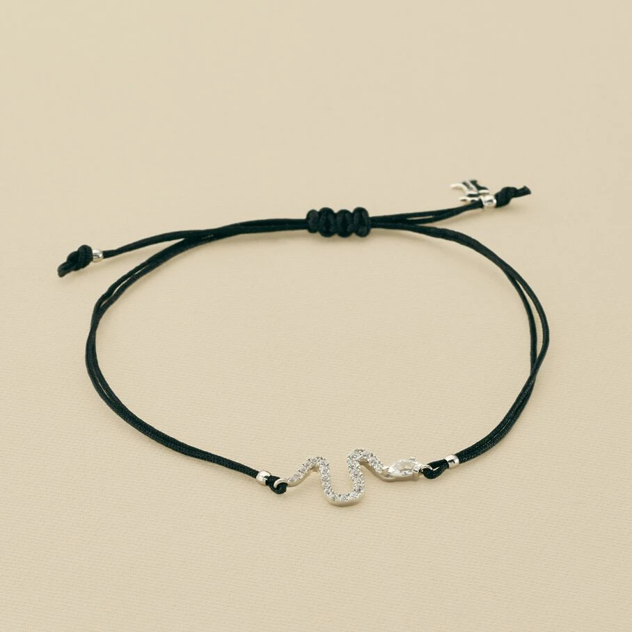 Bracelet cordon orné d’un serpent en argent véritable pavé d’oxydes de zirconium