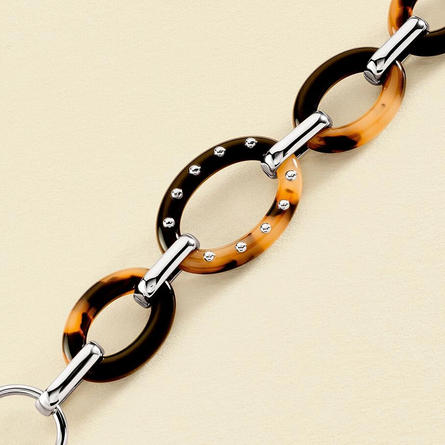Bracelet en laiton doré 750/1000, avec des maillons ovales en acetate et une boule en métal, fermoir T-bar