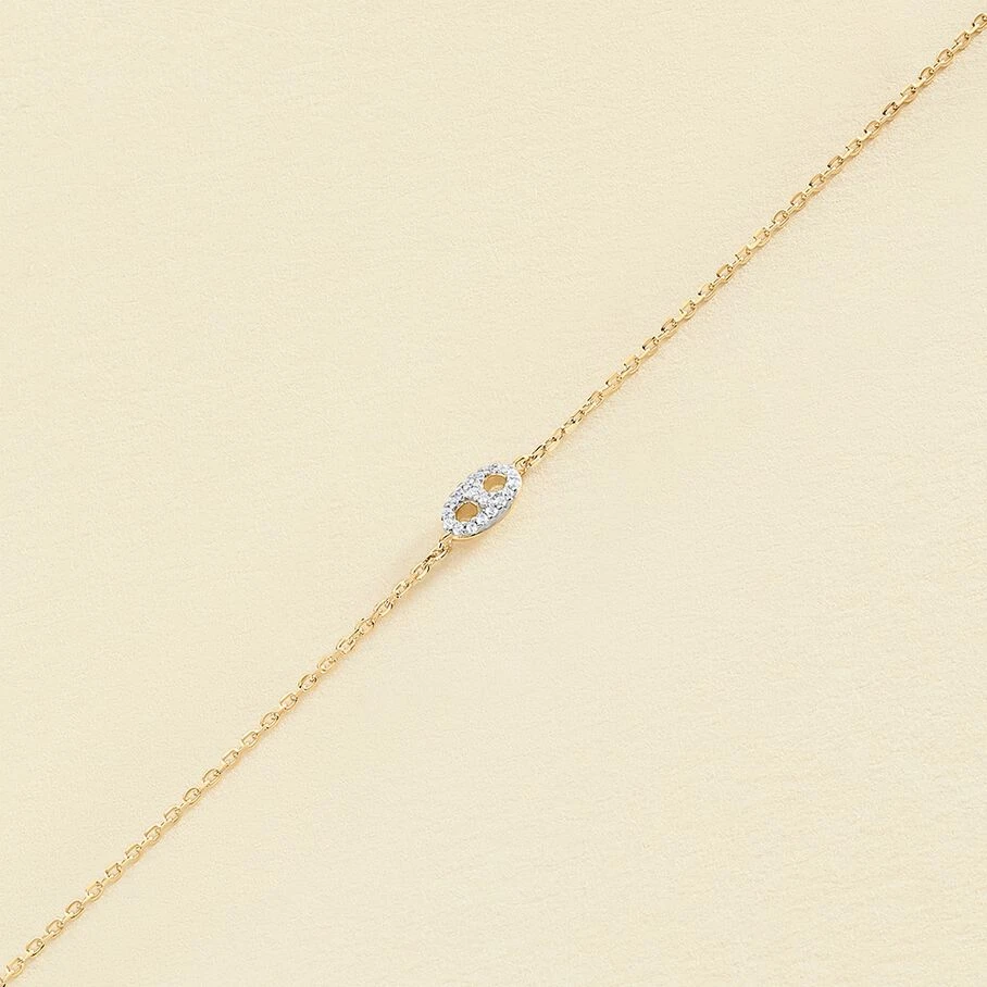 Bracelet, en argent véritable doré 750/1000, avec un grain de café pavé sur ruthénium, monté sur une fine chaine maille forçat
