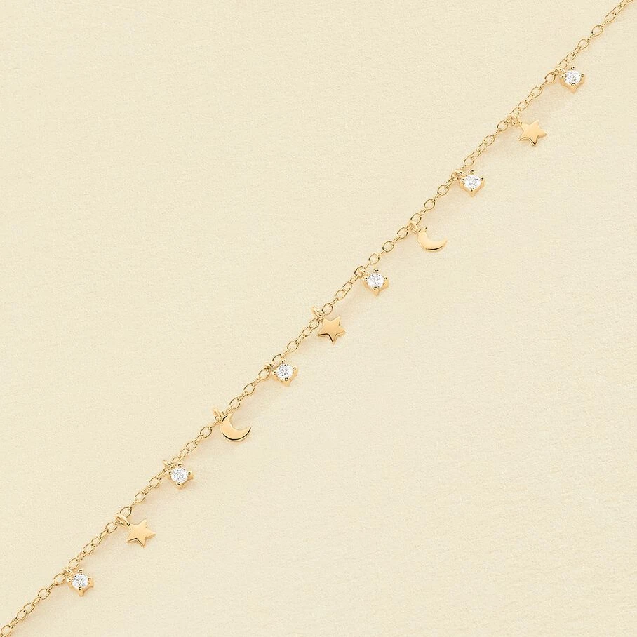 Bracelet, en argent véritable doré 750/1000, avec en pampille des petites lunes et des petites étoiles