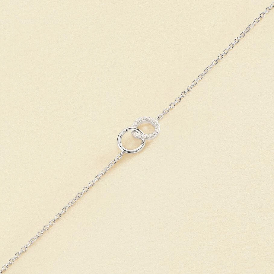 Bracelet souple en argent véritable orné de deux anneaux entrelacés dont un pavé d’oxydes de zirconium