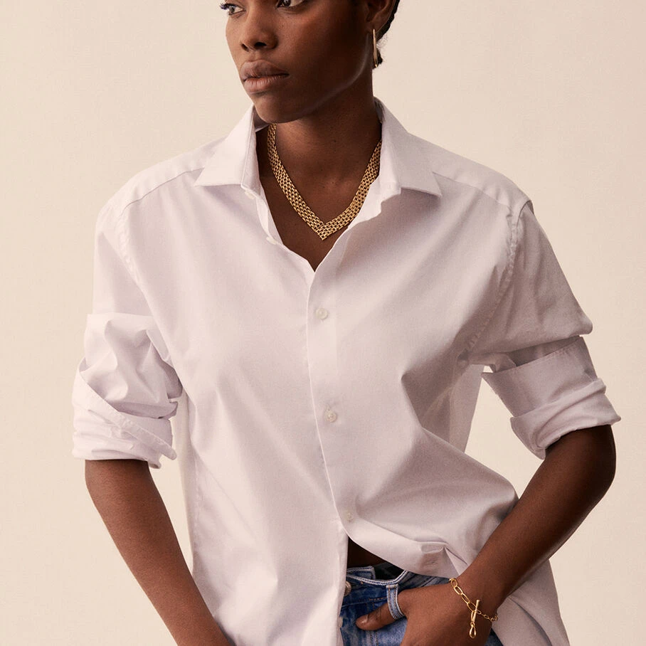 Collier de forme V, en laiton et étain, dont la maille ressemble à une maille de montre