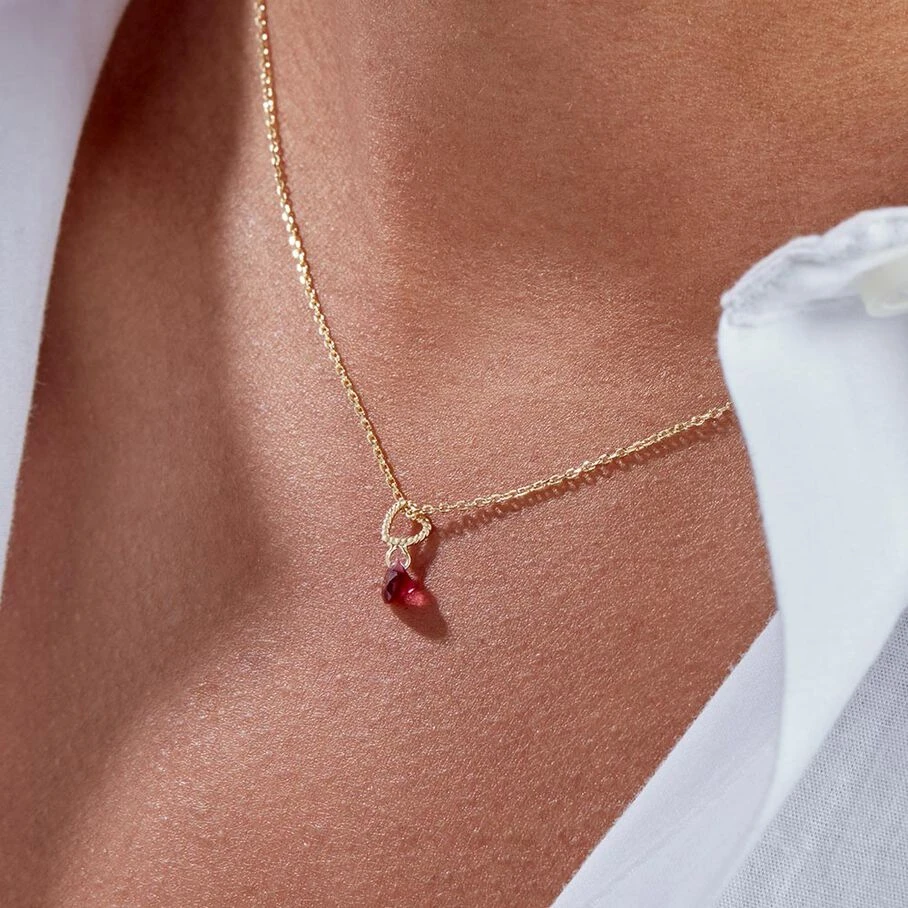 Collier, en argent véritable doré 750/1000, avec un oxyde de zirconium perçé, en forme de cœur, en pendentif