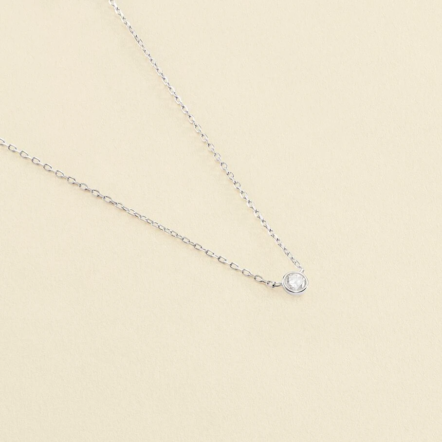 Collier court en argent véritable orné d’un oxyde de zirconium serti clos