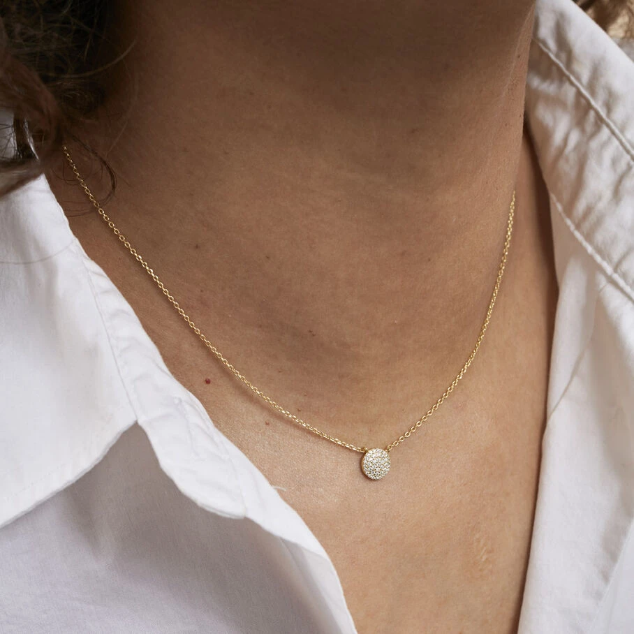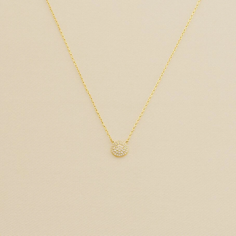 Collier court en argent véritable doré 750/1000, orné d’une pastille pavée d’oxydes de zirconium