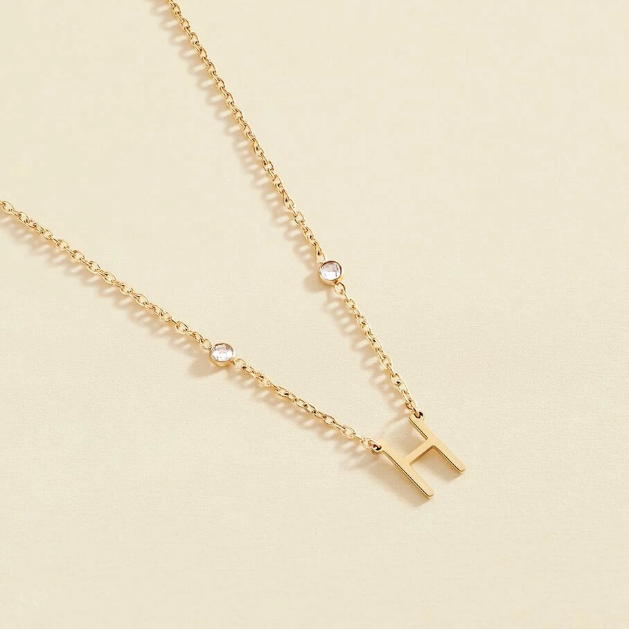 Collier fin composé de la lettre H et de deux oxydes de zirconium. Longueur: 42cm