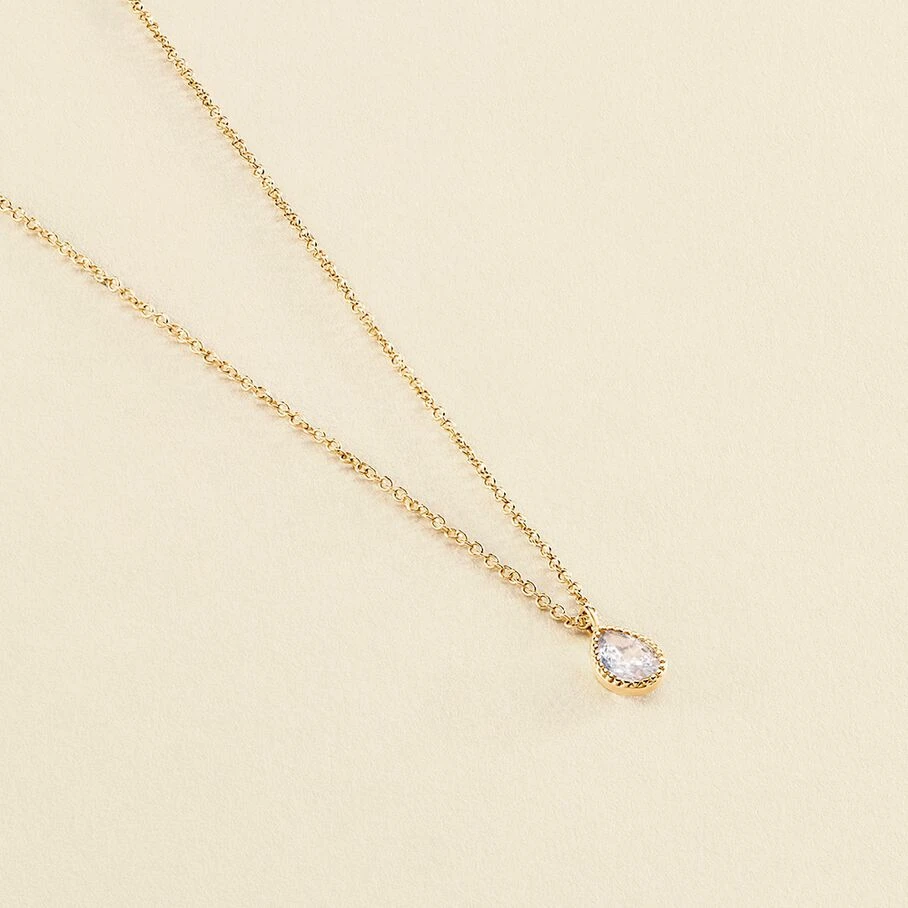 Collier court en laiton doré 750/1000, oxyde de zirconium goutte serti