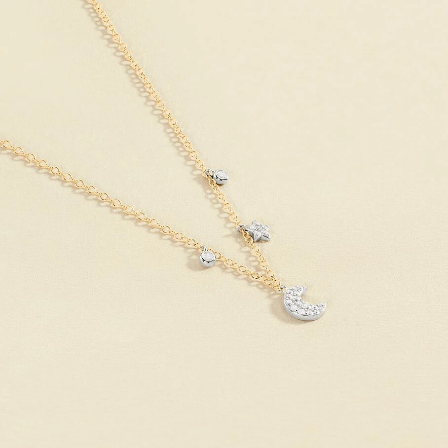Collier, en argent véritable doré 750/1000, avec une lune et une étoile en pendentif