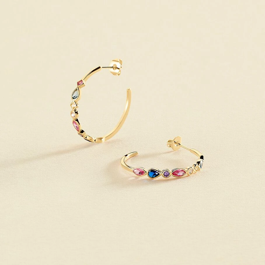 Créoles en laiton doré 750/1000 avec des oxydes de zirconium de différentes formes