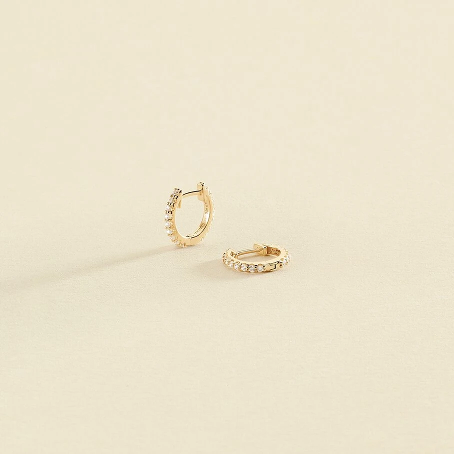 Boucles d’oreilles mini-créoles, en argent véritable dorées 750/1000, pavées d’oxydes de zirconium