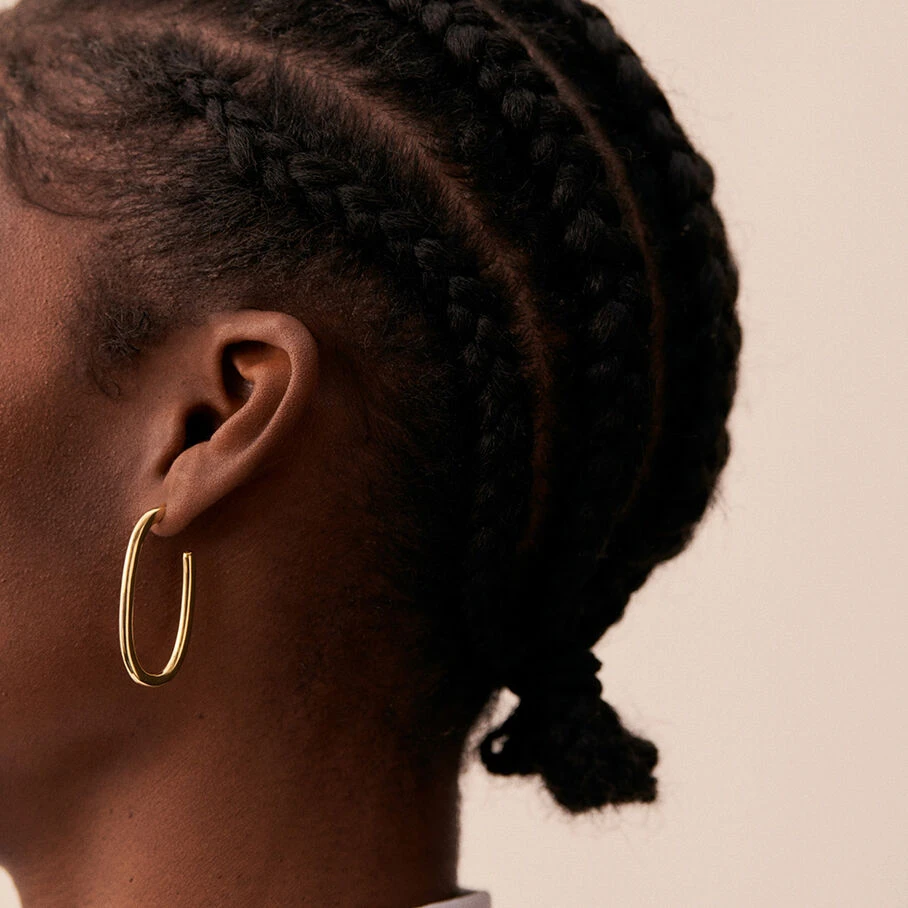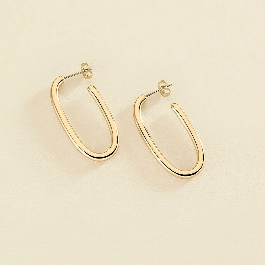 Créoles, fil rond, en laiton doré 750/1000, de forme ovale