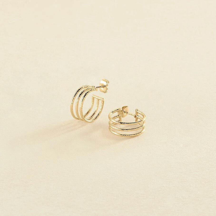 Créoles de 16.5mm de diamètre, en laiton doré 750/1000, faites de plusieurs fils texturés