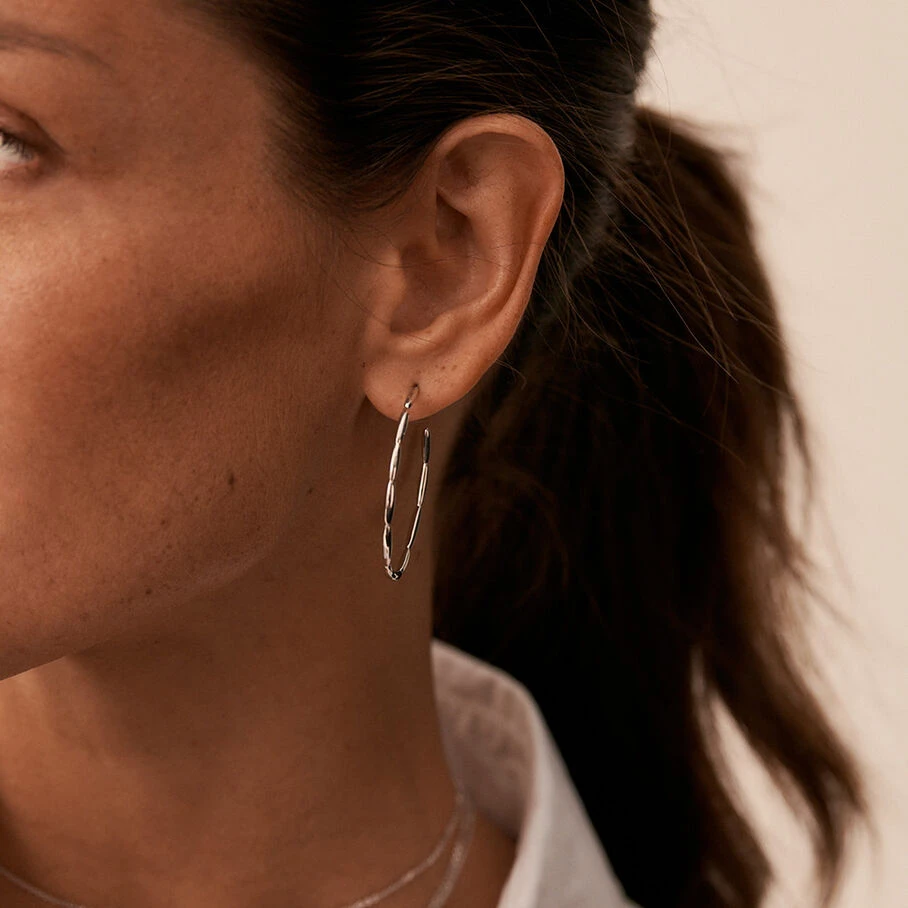 Créoles de 40mm de diamètre, en argent véritable 925/1000 au motif rayon de soleil.