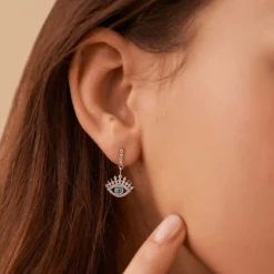 Boucles D’oreilles Pendantes LUCKY EYE – Turquoise / Argenté