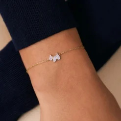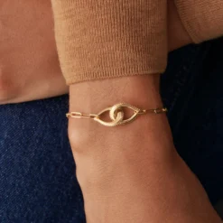 Jonc fin ouvert, en argent véritable doré 750/1000, avec des fleurs d’oxydes de zirconium aux extrémités et un fin graineti sur le pourtour