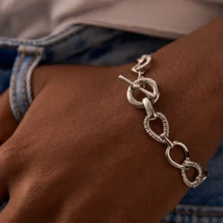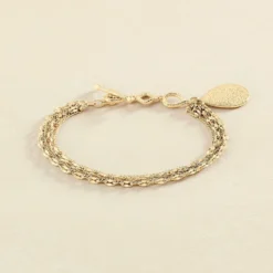 Jonc fin ouvert, en laiton doré à l’or fin, émaillé avec comme motif des yeux turcs avec un oxyde bleu marine au centre de chaque œil