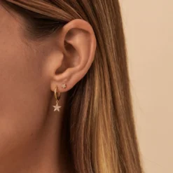 Créole souple, en argent doré 750/1000, oxydes de zirconium et triple chaines. A l’unité