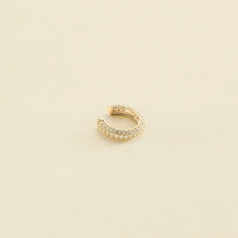 Bague d’oreille en argent doré 750/1000. Anneau pavé d’oxydes de zirconium. A l’unité pour mieux les mixer et les accumuler.