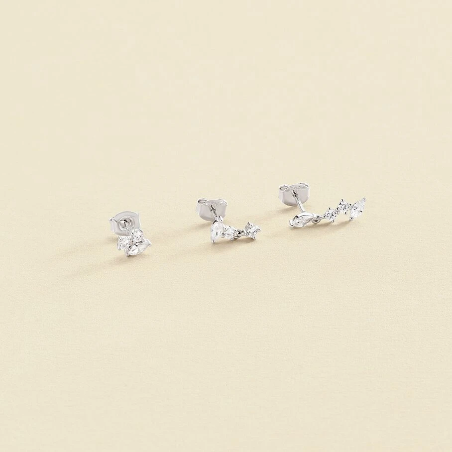 Set de 3 boucles d’oreilles puces, en argent 925, oxydes de ziconium de différentes formes sertis